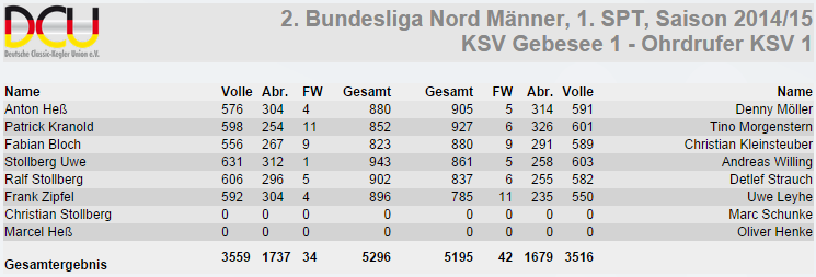 KSV 1955 Gebesee 1 - Ohrdrufer KSV 1 | 5296:5195 Ergebnisse |
